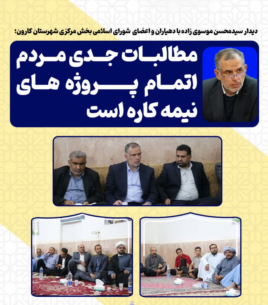 مشکل نیمه کاره بودن پروژه های شهرستان کارون در بخش شهری و روستایی از مطالبات جدی مردم از سوی دهیاران و اعضای شورای شهر در این نشست عنوان شد.