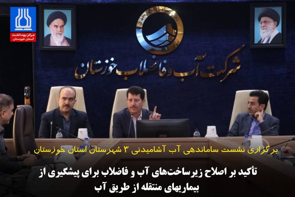 به گزارش شیرین خبر از روابط عمومی معاونت بهداشت دانشگاه علوم پزشکی جندیشاپور اهواز، نشست بررسی وضعیت آب آشامیدنی شهرستانهای ایذه، هندیجان و دزپارت روز سه شنبه چهارم آذرماه با حضور دکتر مهرداد شریفی معاون بهداشت دانشگاه و رئیس مرکز بهداشت استان خوزستان، مهندس افشین محمدی معاون بهرهبرداری شرکت آب و فاضلاب استان، مدیران استانی و روسای مراکز بهداشت و آبفای شهرستانهای مذکور در سالن اجتماعات شرکت مهندسی آب و فاضلاب استان برگزار شد.